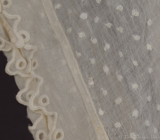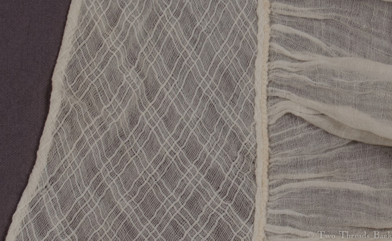 Ah, the quest to identify the delicate fabric! So many surviving caps, collars, aprons, and gowns. Mull, book, or clear muslin; longcloth, cambric, nainsook, lawn, batiste. Not to mention spotted, sprigged, flowered, figured, checked, worked, striped, and embroidered!