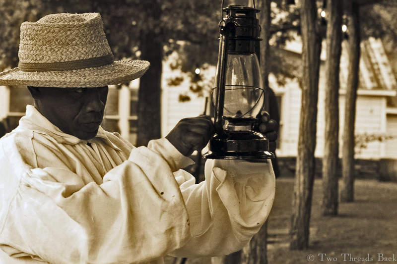 It’s made of a very fine muslin – a previous owner must have bleached it white again – and uses basic hemming, running, and stitching (called backstitching today). It shows some of the earliest use of (what we call today) a french seam on the sides and shoulders. The sleeve seams are overcast.