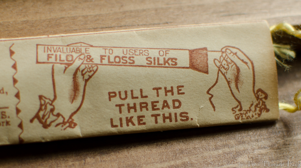 The design I used was loosely based on an 1770s pattern from The Lady’s Magazine. I scanned the original pattern and scaled it down to Pharaby-size. Then I raided a stash of old 1890s embroidery silks. I tried using the thread as it came from the skein, but it was way too thick – using only one ply made it almost small enough. And I can tell you that it did NOT work like the illustration on the wrapper!
