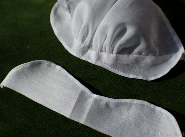I did experience one of those aha moments when attaching the headpiece/band/brim to the crown. It was easy to “set in” the little gathers on the top thanks to the fact that the band was double. It worked just the same way as setting a gathered sleeve into a cuff! Maybe that’s why they so often had double brims?