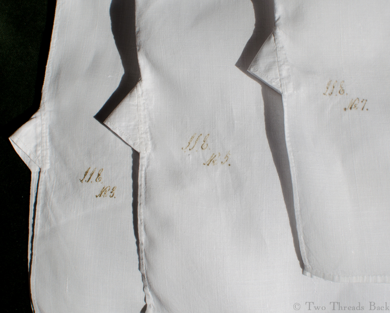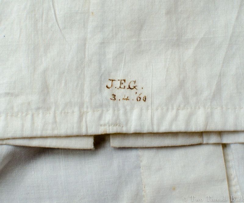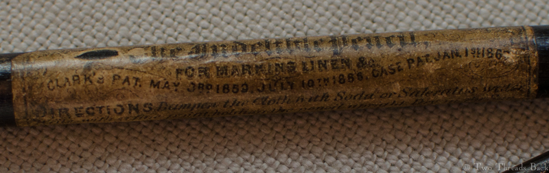 As a student of plain work, I’m in awe of the blindingly tiny stitches that were used for marking. I’ve blogged about it some here and here. But anyone who studies plain sewing will notice that during the 19th century, a new solution was the solution: indelible ink!