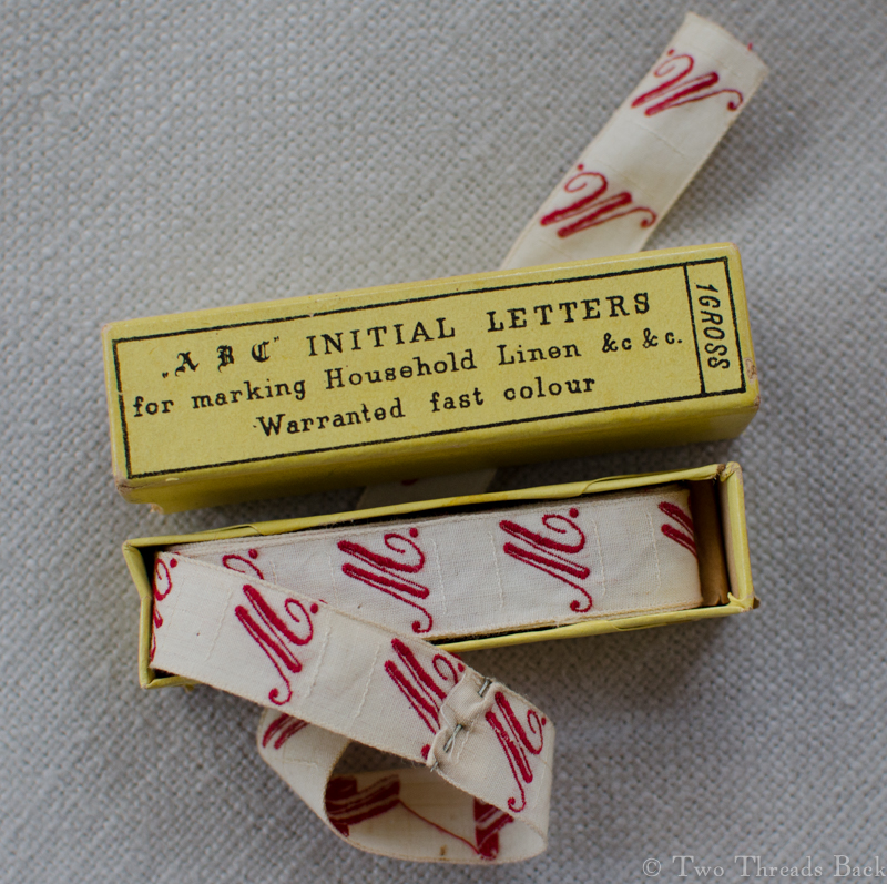 And if thread, ink, pencil, and stencil didn’t suit, along came another option: ready-made. The machine embroidered letters came on a length of tape. They even came in Traditional Turkey Red.