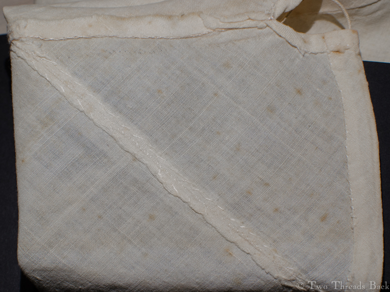They were meant for working rather than fashion because they were made of an ordinary quality muslin and show a good bit of wear.