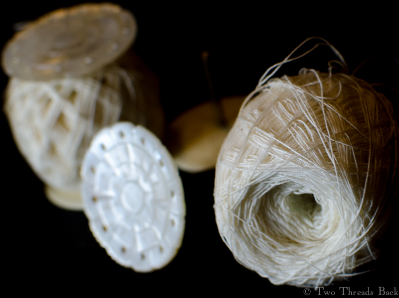 That was helpful in affirming what textile historians tell us, that the change from linen to cotton for sewing thread happened in the late 18th-early 19th century. But how would you find it in a shop?