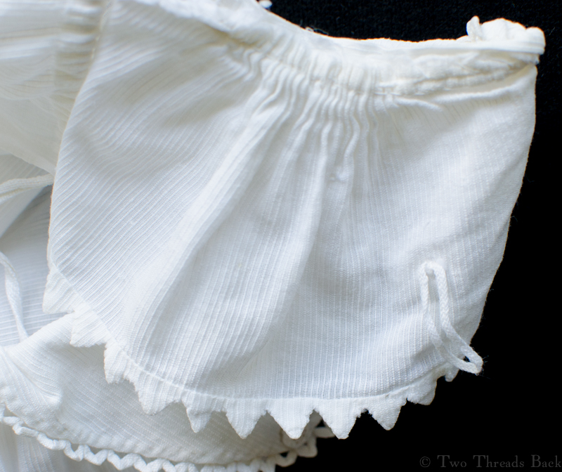 I’ve called these pieces lappets and tuckers, but I truly don’t know. Research didn’t settle anything for me this time, so any help is welcome. Maybe someday in the future our descendants will ask the same questions about our garments. I know I’ve shopped for workout clothes and been just as confounded – these strappy scraps of spandex go how?!