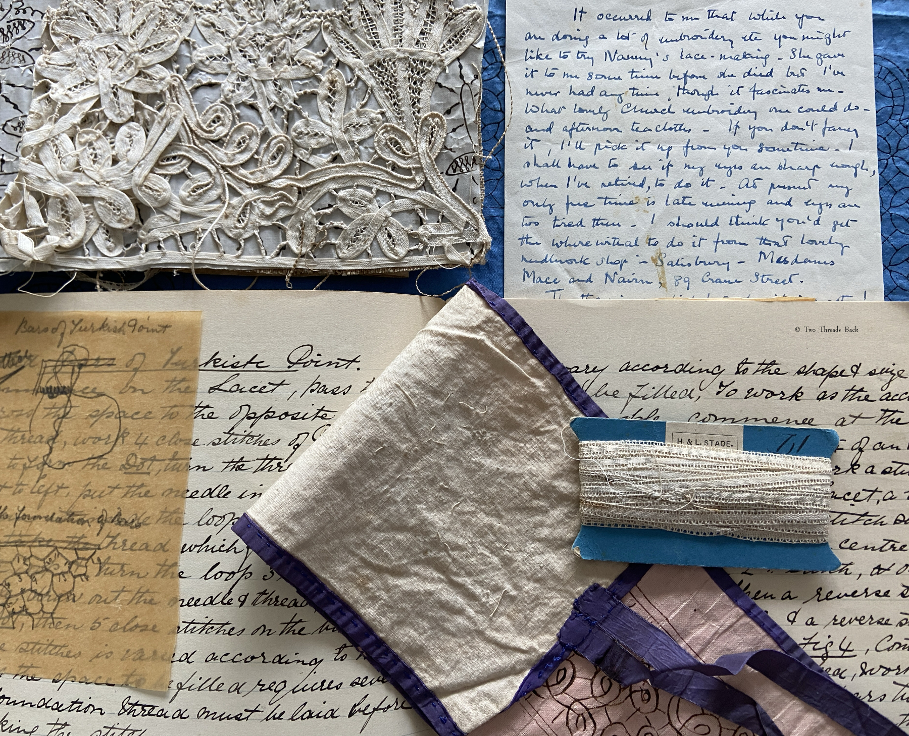 In a 1960s letter, a previous owner of the lace work recommended a needlework supplier, Mesdames Mace and Nairn, that may still be supplying embroiderers today!