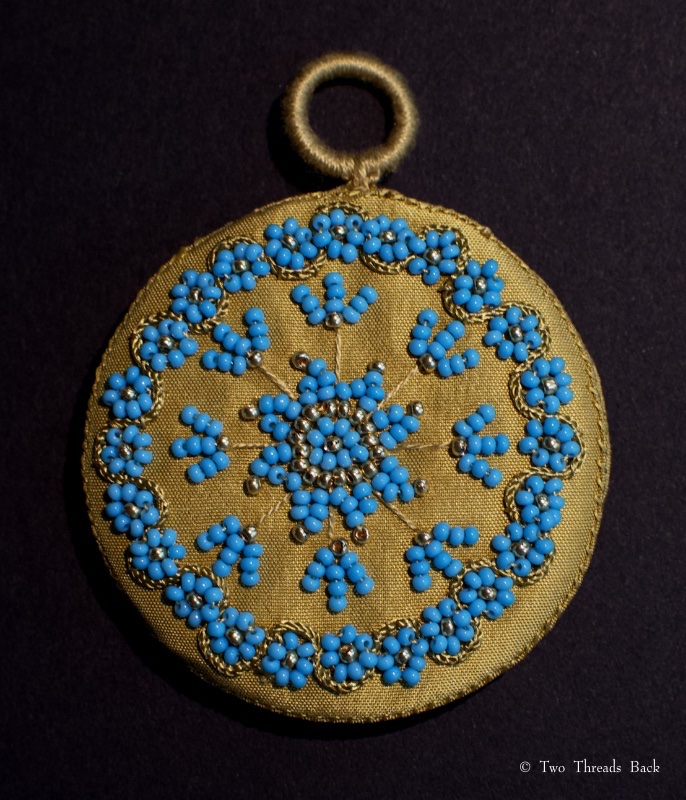 Maybe I fixated on this design because it’s extremely pretty, or maybe because it’s unusual to find that many of the same homemade craft surviving. However, according to a knowledgeable source, this particular one is not uncommon. Even a rare mutation – pink beaded! – has been sighted.