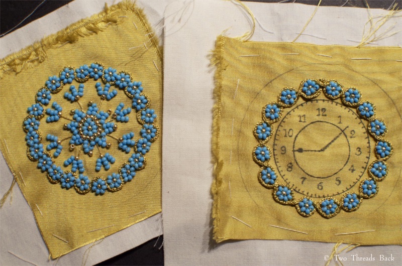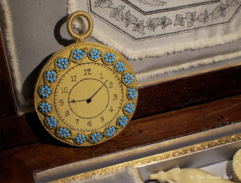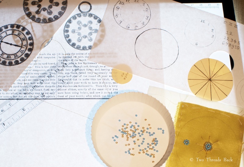 For now anyway, the pattern for the antique “watches” with numbers and star design remains unidentified. Well then, back to creating my own (economy) version. Since I couldn’t find materials exactly like the originals, I had to do some contriving.