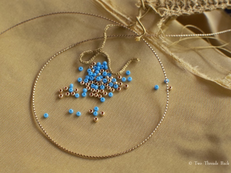 - Tiny gold and turquoise beads > the smallest Hobby Lobby carried
