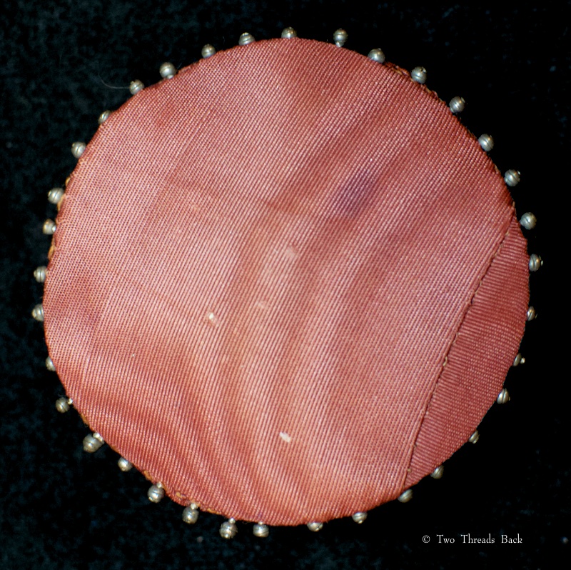 Tiny pin cushions have a special charm, particularly the disk shape, with pins inserted around the perimeter. I always considered it an impractical design though, for sewing. Then one day I came across Mrs. Child’s comment in The Girl’s Own Book (1833) and my dim light bulb clicked on: